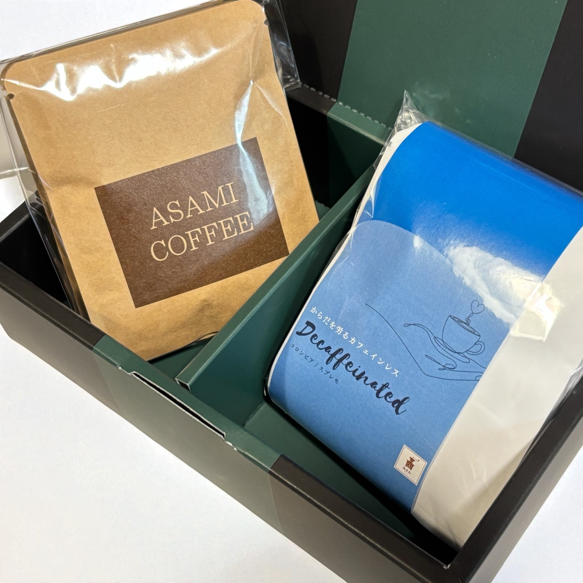 当店人気の定番「オリジナルブレンド」と、コロンビアの「カフェインレスコーヒー」を詰め合わせた特別なギフトセットです。
